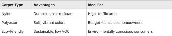 This table highlights the advantages of different carpet types, helping homeowners make informed decisions based on their specific needs and preferences.